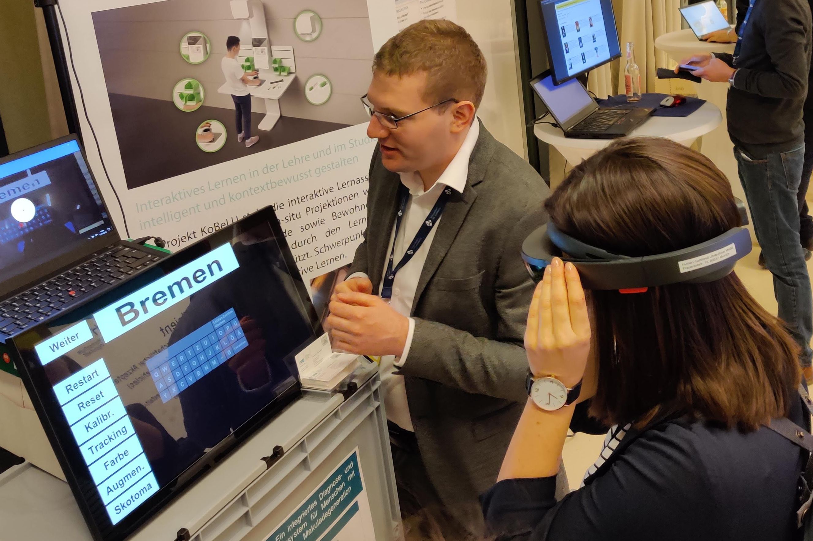 Der vorgestellte Funktionsdemonstrator ermöglicht Personen mit Zentralskotom eine einfache Bedienung von Touchscreen Interfaces. Dabei wird eine Datenbrille verwendet um das aktuelle Ziel, also den zu drückenden Knopf, hervorzuheben bzw. das Auffinden zu erleichtern. Weiterhin war für die Besucher eine rudimentäre Simulation eines Zentralskotoms eingebaut um das Verständnis für Betroffene zu erhöhen und die Schwierigkeiten im Alltag anderen klar zu machen.